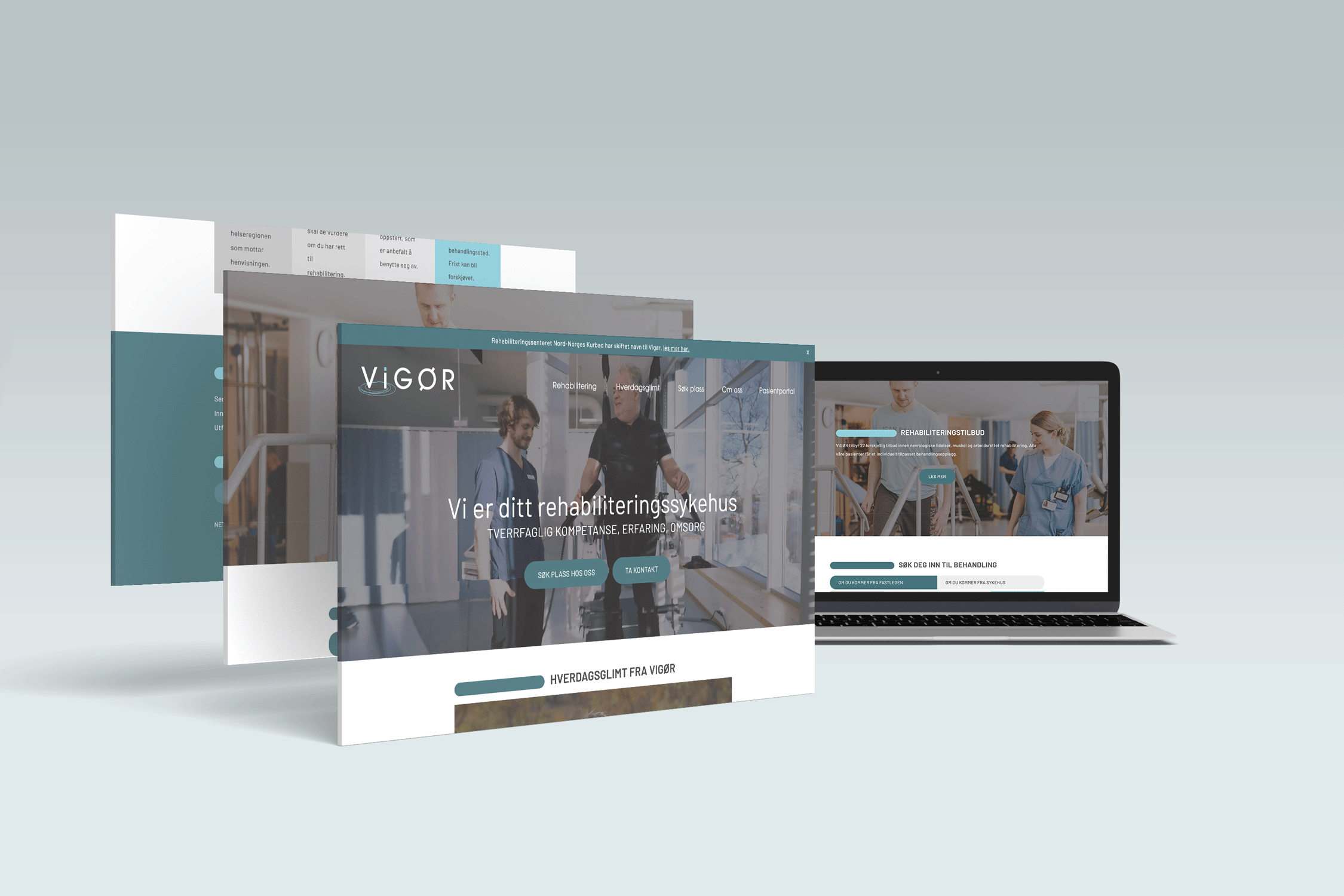 Vigør is a national rehabilitation centre specializing in musculoskeletal, neurological, and work-oriented care. The previous identity no longer reflected the centre’s expanded services or provided clear, accessible guidance for patients, visitors, and staff.